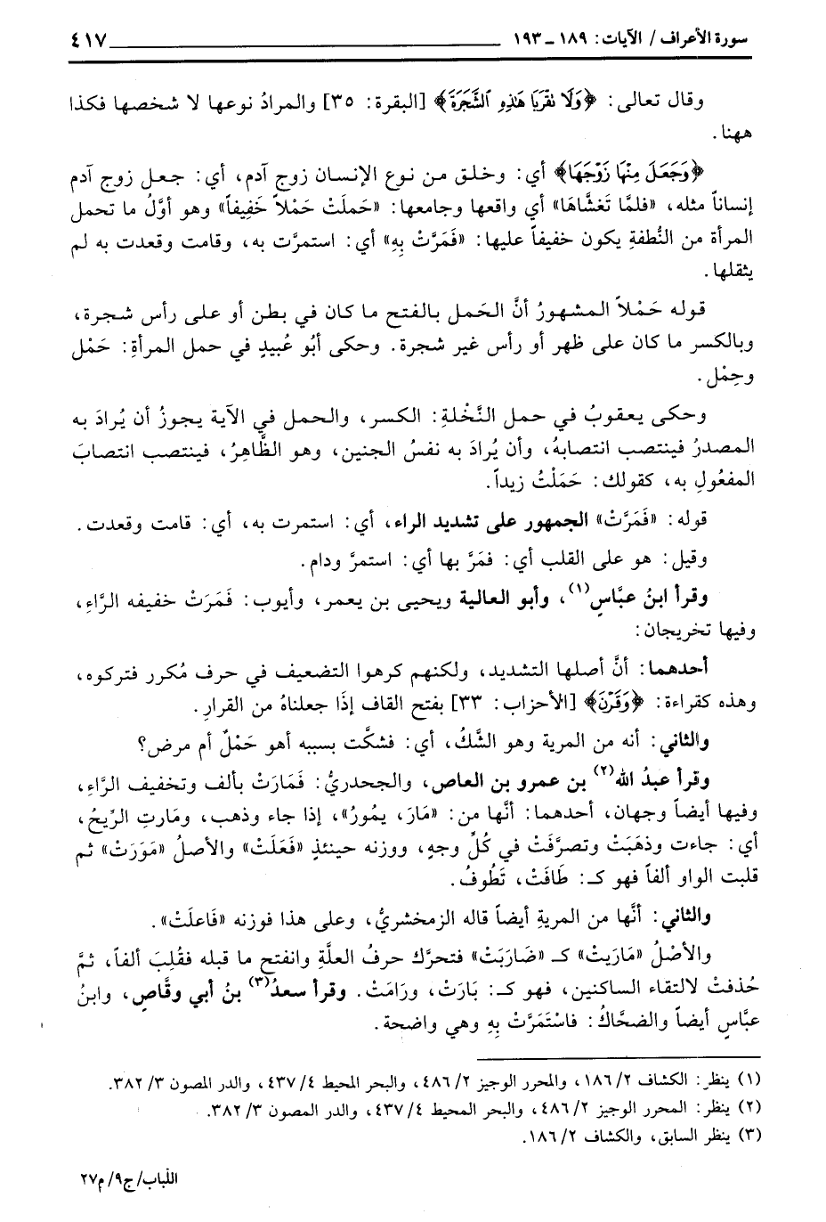وقرأ ابنُ عبَّاسٍ: وأبو العالية ويحيى بن يعمر، وأيوب: فَمَرَتْ خفيفه الرَّاءِ، وفيها تخريجان: