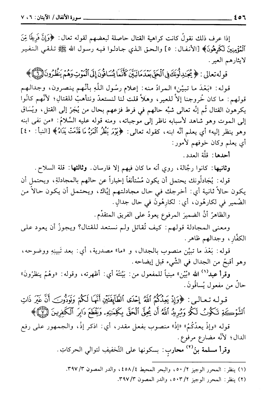 ومعنى المجادلة قولهم: كيف تُقاتل ولم نستعد للقتال؟ ويجوزُ أن يعود على الكفَّارِ، وجدالهم ظاهر.
