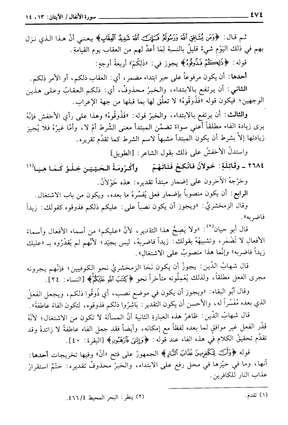 وقال أبُو البقاء: «ويجوز أن يكون في موضع نصب، أي ذُوقُوا ذلكم، ويجعل الفعلُ الذي بعده مُفَسِّراً له، والأحسن أن يكون التقدير: بَاشِرُوا ذلكم فذوقوه، لتكون الفاءُ عاطفةً»