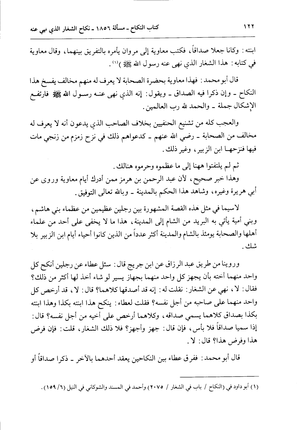 قَالَ أَبُو مُحَمَّدٍ: فَهَذَا مُعَاوِيَةُ بِحَضْرَةِ الصَّحَابَةِ لَا يُعْرَفُ لَهُ مِنْهُمْ مُخَالِفٌ يَفْسَخُ هَذَا النِّكَاحَ - وَإِنْ ذَكَرَا فِيهِ الصَّدَاقَ - وَيَقُولُ: إنَّهُ الَّذِي نَهَى عَنْهُ رَسُولُ اللَّهِ - صَلَّى اللَّهُ عَلَيْهِ وَسَلَّمَ - فَارْتَفَعَ الْإِشْكَالُ جُمْلَةً - وَالْحَمْدُ لِلَّهِ رَبِّ الْعَالَمِينَ.