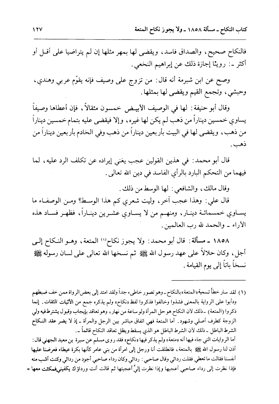 1858 - مَسْأَلَةٌ: قَالَ أَبُو مُحَمَّدٍ: وَلَا يَجُوزُ نِكَاحُ الْمُتْعَةِ، وَهُوَ النِّكَاحُ إلَى أَجَلٍ، وَكَانَ حَلَالًا عَلَى عَهْدِ رَسُولِ اللَّهِ - صَلَّى اللَّهُ عَلَيْهِ وَسَلَّمَ - ثُمَّ نَسَخَهَا اللَّهُ تَعَالَى عَلَى لِسَانِ رَسُولِهِ - صَلَّى اللَّهُ عَلَيْهِ وَسَلَّمَ - نَسْخًا بَاتًّا إلَى يَوْمِ الْقِيَامَةِ.