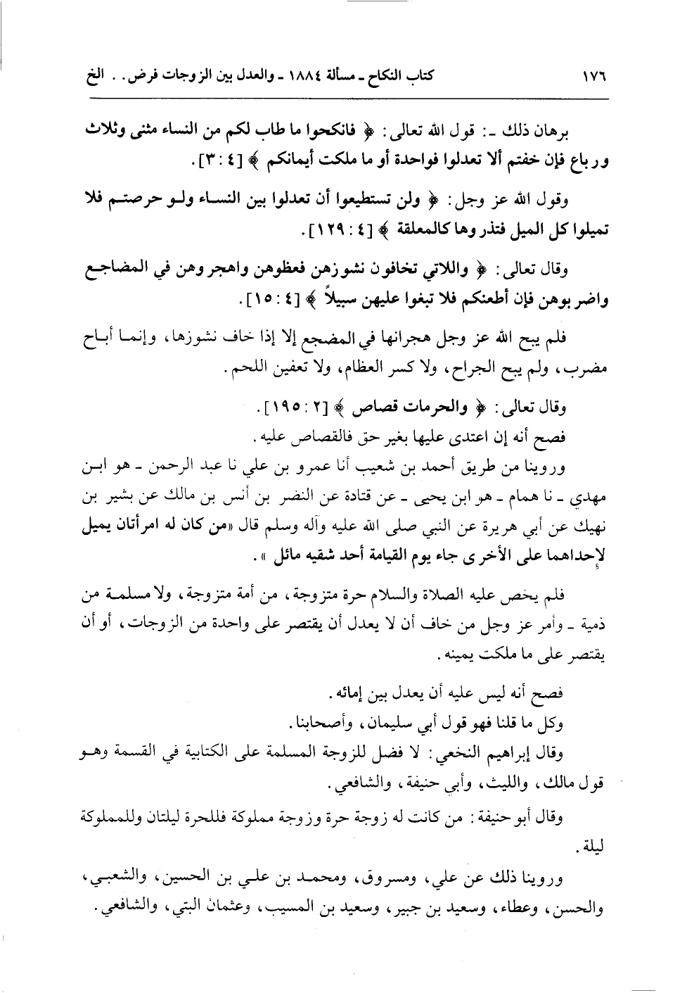 وَقَالَ إبْرَاهِيمُ النَّخَعِيُّ: لَا فَضْلَ لِلزَّوْجَةِ الْمُسْلِمَةِ عَلَى الْكِتَابِيَّةِ فِي الْقِسْمَةِ، وَهُوَ قَوْلُ مَالِكٍ، وَاللَّيْثِ، وَأَبِي حَنِيفَةَ، وَالشَّافِعِيِّ.