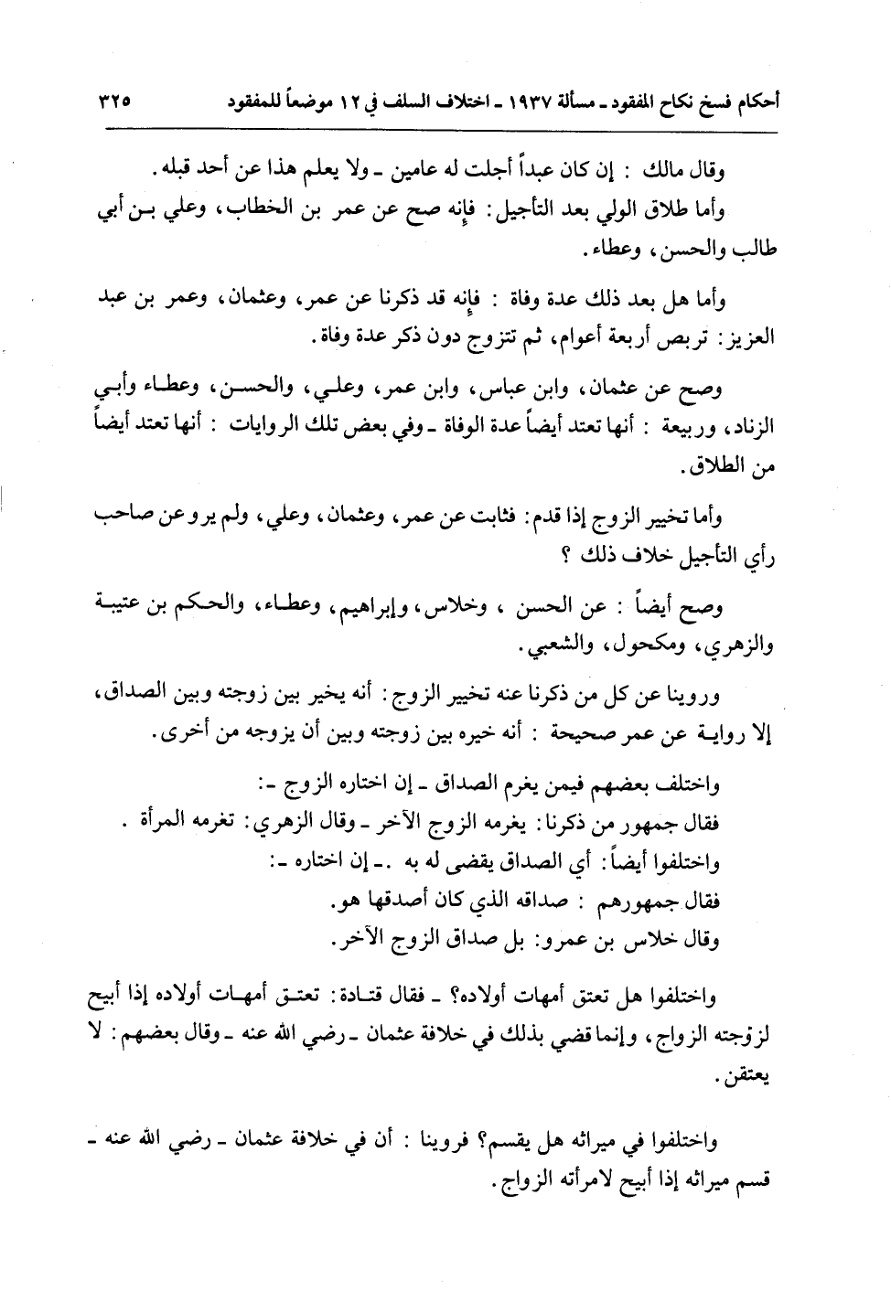وَأَمَّا هَلْ بَعْدَ ذَلِكَ عِدَّةُ وَفَاةٍ: فَإِنَّهُ قَدْ ذَكَرْنَا عَنْ عُمَرَ، وَعُثْمَانَ، وَعُمَرَ بْنِ عَبْدِ الْعَزِيزِ: تَرَبُّصَ أَرْبَعَةِ أَعْوَامٍ، ثُمَّ تَتَزَوَّجُ دُونَ ذِكْرِ عِدَّةِ وَفَاةٍ.
