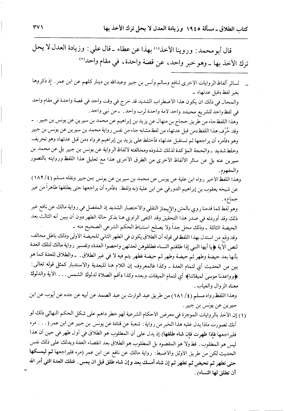 قَالَ أَبُو مُحَمَّدٍ: وَرُوِّينَا الْأَخْذَ بِهَذَا عَنْ عَطَاءٍ - قَالَ عَلِيٌّ: وَزِيَادَةُ الْعَدْلِ لَا يَحِلُّ تَرْكُ الْأَخْذِ بِهَا - وَهُوَ خَبَرٌ وَاحِدٌ، عَنْ قِصَّةٍ وَاحِدَةٍ، فِي مَقَامٍ وَاحِدٍ