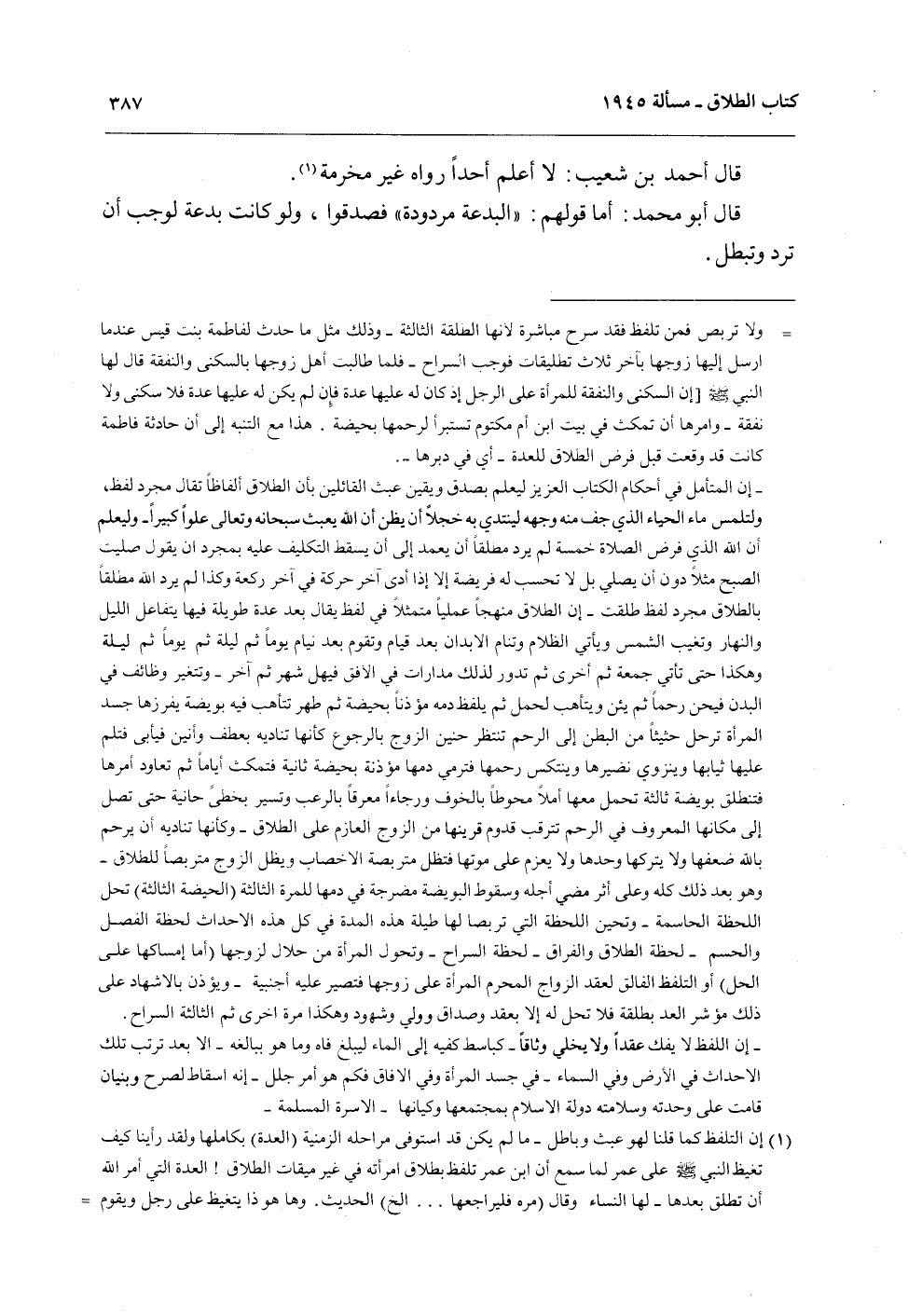 قَالَ أَبُو مُحَمَّدٍ: أَمَّا قَوْلُهُمْ: " الْبِدْعَةُ مَرْدُودَةٌ " فَصَدَقُوا، وَلَوْ كَانَتْ بِدْعَةً لَوَجَبَ أَنْ تُرَدَّ وَتَبْطُلَ.