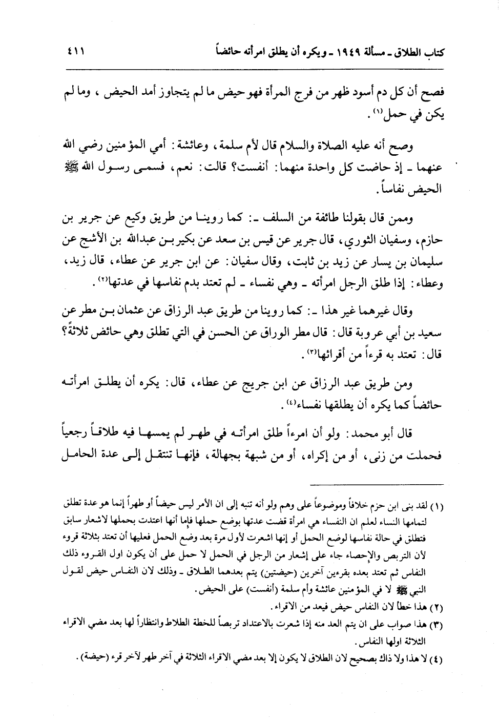 وَمِمَّنْ قَالَ بِقَوْلِنَا طَائِفَةٌ مِنْ السَّلَفِ -: كَمَا رُوِّينَا مِنْ طَرِيقِ وَكِيعٍ عَنْ جَرِيرِ بْنِ حَازِمٍ، وَسُفْيَانَ الثَّوْرِيِّ، قَالَ جَرِيرٌ عَنْ قَيْسِ بْنِ سَعْدٍ عَنْ بُكَيْرٍ عَنْ عَبْدِ اللَّهِ بْنِ الْأَشَجِّ عَنْ سُلَيْمَانَ بْنِ يَسَارٍ عَنْ زَيْدِ بْنِ ثَابِتٍ، وَقَالَ سُفْيَانُ: عَنْ ابْنِ جَرِيرٍ عَنْ عَطَاءٍ، قَالَ زَيْدٌ، وَعَطَاءٌ: إذَا طَلَّقَ الرَّجُلُ امْرَأَتَهُ - وَهِيَ نُفَسَاءُ - لَمْ تَعْتَدَّ بِدَمِ نِفَاسِهَا فِي عِدَّتِهَا.