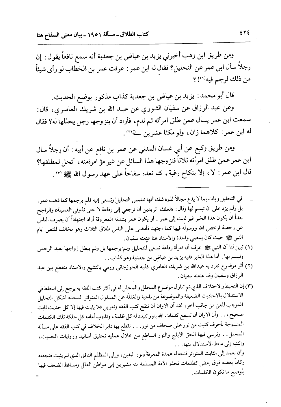 وَمِنْ طَرِيقِ ابْنِ وَهْبٍ أَخْبَرَنِي يَزِيدُ بْنُ عِيَاضِ بْنِ جُعْدُبَةَ أَنَّهُ سَمِعَ نَافِعًا يَقُولُ: إنَّ رَجُلًا سَأَلَ ابْنَ عُمَرَ عَنْ التَّحْلِيلِ؟ فَقَالَ لَهُ ابْنُ عُمَرَ: عَرَفْت عُمَرَ بْنَ الْخَطَّابِ لَوْ رَأَى شَيْئًا مِنْ ذَلِكَ لَرَجَمَ فِيهِ.؟