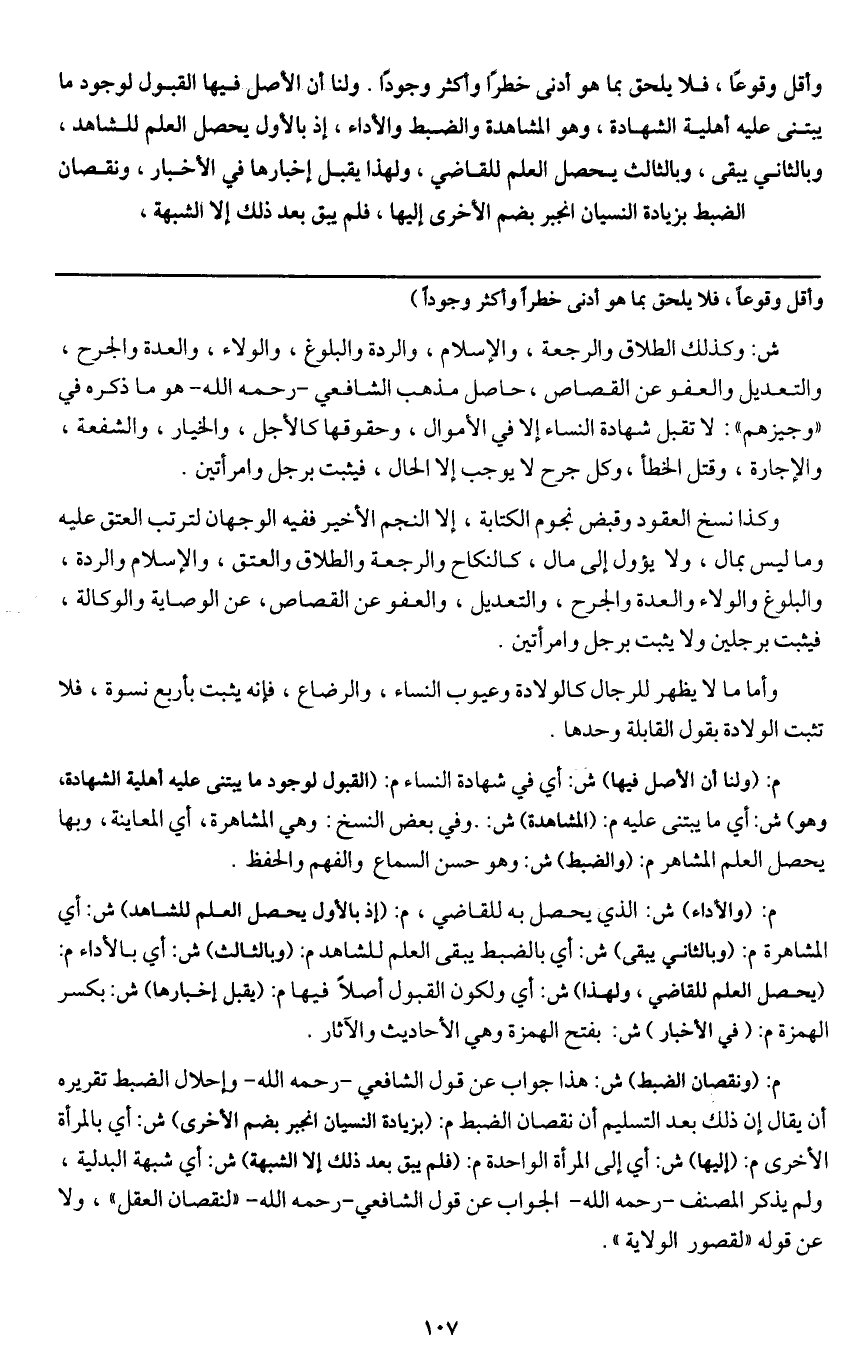 ش: وكذلك الطلاق والرجعة، والإسلام، والردة والبلوغ، والولاء، والعدة والجرح، والتعديل والعفو عن القصاص، حاصل مذهب الشافعي - رَحِمَهُ اللَّهُ - هو ما ذكره في "وجيزهم": لا تقبل شهادة النساء إلا في الأموال، وحقوقها كالأجل، والخيار، والشفعة، والإجارة، وقتل الخطأ، وكل جرح لا يوجب إلا الحال، فيثبت برجل وامرأتين.
