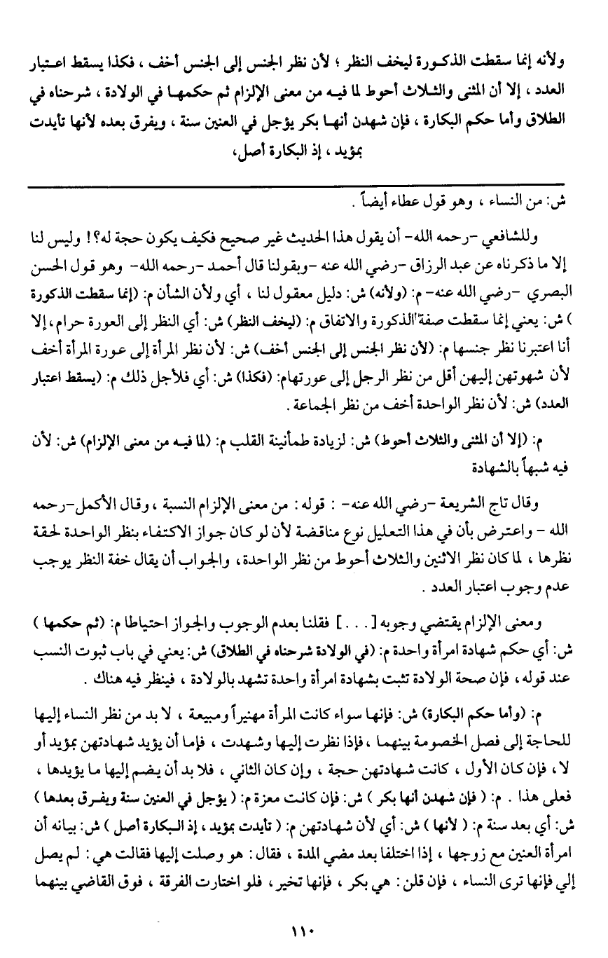 وقال تاج الشريعة - رَضِيَ اللَّهُ عَنْهُ -: قوله: من معنى الإلزام النسبة، وقال الأكمل - رَحِمَهُ اللَّهُ - واعترض بأن في هذا التعليل نوع مناقضة؛ لأن لو كان جواز الاكتفاء بنظر الواحدة لحقة نظرها، لما كان نظر الاثنين والثلاث أحوط من نظر الواحدة، والجواب أن يقال: خفة النظر يوجب عدم وجود اعتبار العدد.