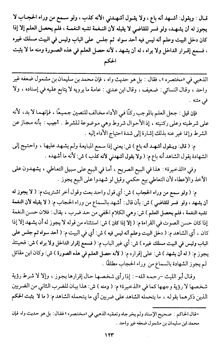 وقال أبو الليث - رَحِمَهُ اللَّهُ -: إذا رأى شخصها حال إقرارها يجوز، وإلا لا شرط رؤية شخصها لا رؤية وجهها كما في " الذخيرة " م: (ومنه) ش: هذا بيان للضرب الثاني من الضربين الذين ذكرهما بقوله: ما يتحمله الشاهد على ضربين أي ما يتحمله الشاهد. م: (ما لا يثبت الحكم