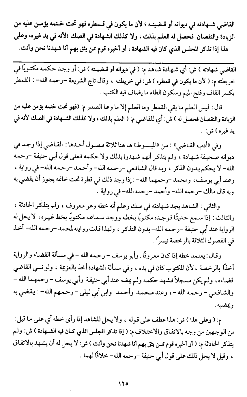 والثاني: الشاهد يجد شهادته في صك وعلم أنه خطه وهو معروف، ولم يتذكر الحادثة، والثالث: إذا سمع حديثا فوجده مكتوبا بخطه ووجد سماعه مكتوبا بخط غيره، لا يحل له الرواية عند أبي حنيفة - رَحِمَهُ اللَّهُ - بدون التذكر، ولهذا قلت روايته لمحمد - رَحِمَهُ اللَّهُ - أخذ في الفصول الثلاثة بالرخصة تيسيرا.