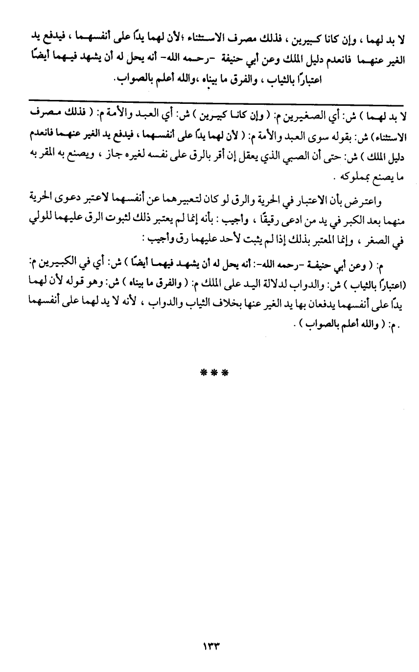 لا بد لهما، وإن كانا كبيرين فذلك مصرف الاستثناء لأن لهما يدا على أنفسهما، فيدفع يد الغير عنهما فانعدم دليل الملك وعن أبي حنيفة - رحمه الله- أنه يحل له أن يشهد فيهما أيضاً اعتباراً بالثياب، والفرق ما بيناه، والله أعلم بالصواب.