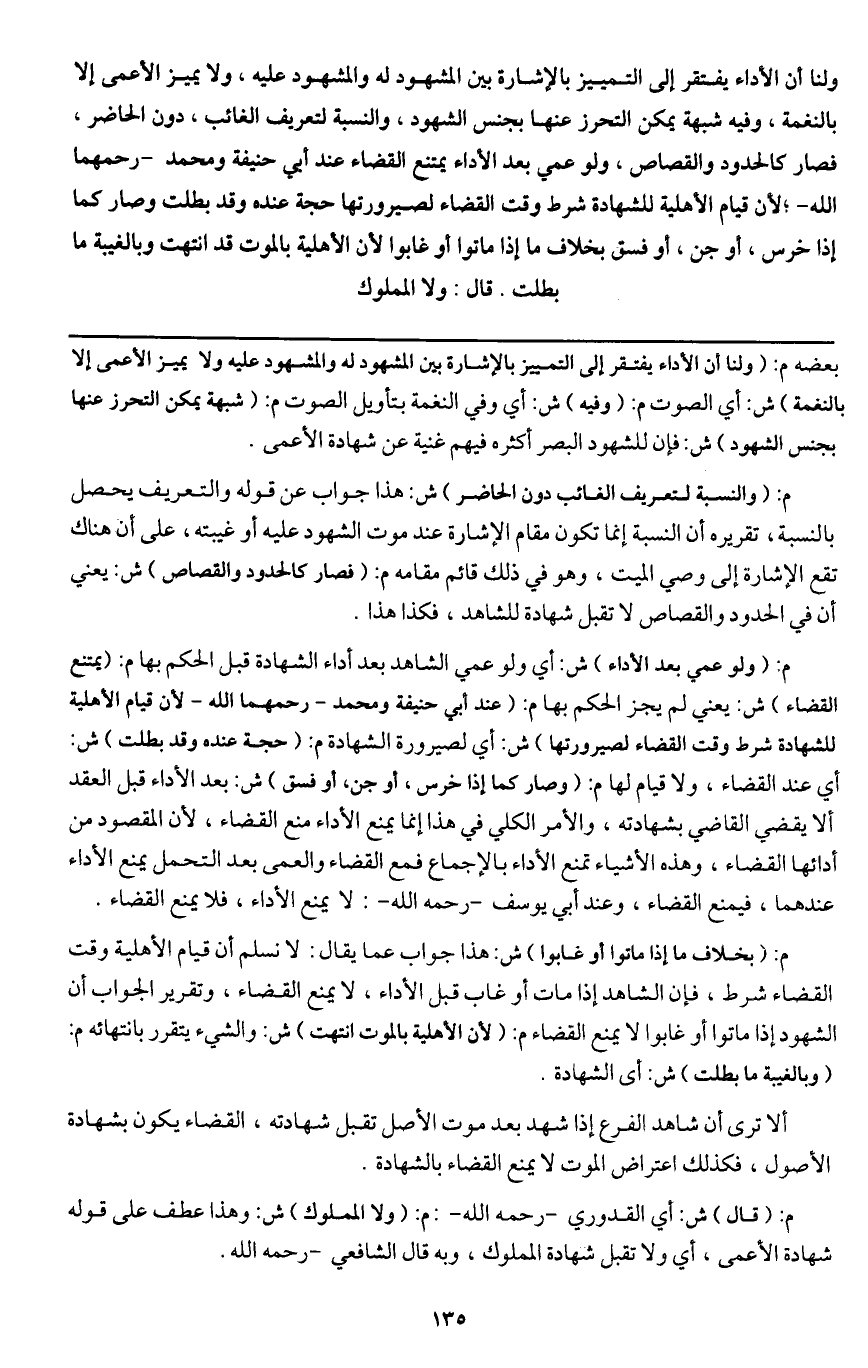 ـــــــــــــــــــــــــــــQبعضه م: (ولنا أن الأداء يفتقر إلى التمييز بالإشارة بين المشهود له والمشهود عليه، ولا يميز الأعمى إلا بالنغمة) ش: أي الصوت م: (وفيه) ش: أي وفي النغمة بتأويل الصوت م: (شبهة يمكن التحرز عنها بجنس الشهود) ش: فإن للشهود البصر أكثره فيهم غنية عن شهادة الأعمى.