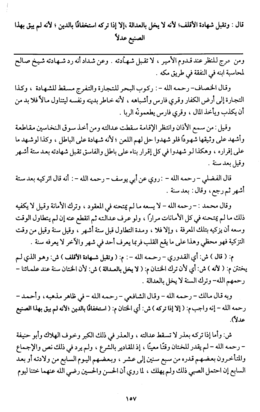 قال: وتقبل شهادة الأقلف؛ لأنه لايخل بالعدالة، إلا إذا تركه استخفافا بالدين لأنه لم يبق بهذا الصنيع عدلا.