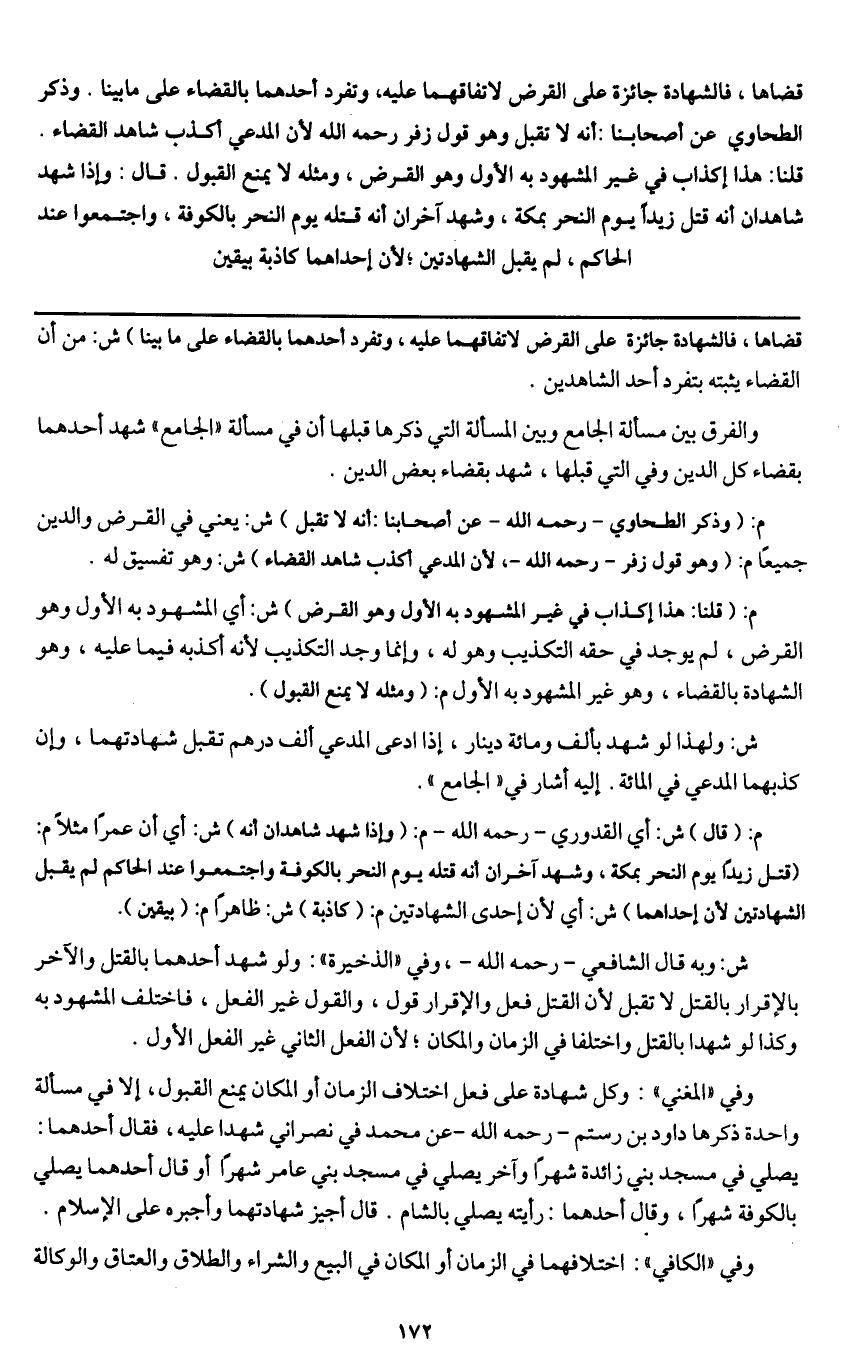 والفرق بين مسألة الجامع وبين المسألة التي ذكرها قبلها أن مسألة " الجامع " شهد أحدهما بقضاء كل الدين وفي التي قبلها، شهد بقضاء بعض الدين.