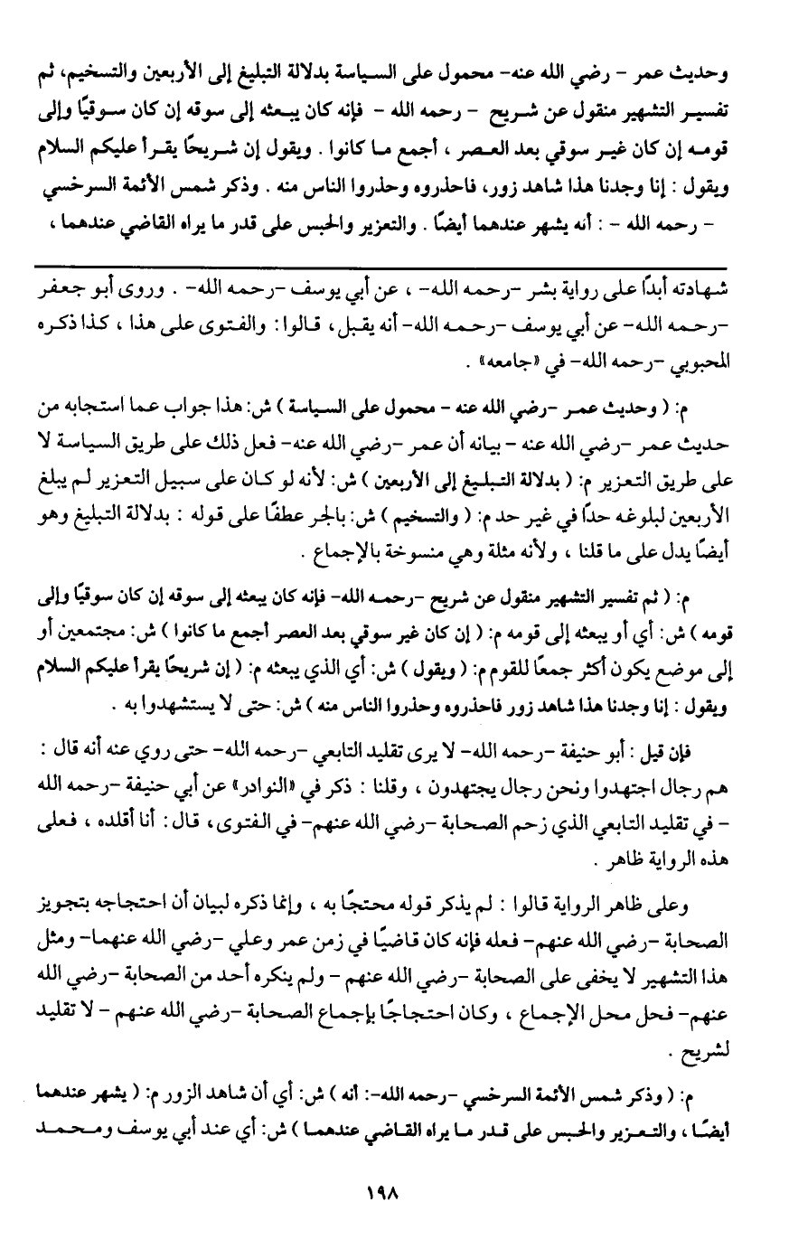 وعلى ظاهر الرواية قالوا: لم يذكر قوله محتجا به، وإنما ذكره لبيان أن احتجاجه بتجويز الصحابة - رَضِيَ اللَّهُ عَنْهُمْ - فعله فإنه كان قاضيا في زمن عمر وعلي - رَضِيَ اللَّهُ عَنْهُمَا - ومثل هذا التشهير لا يخفى على الصحابة - رَضِيَ اللَّهُ عَنْهُمْ - ولم ينكره أحد من الصحابة - رَضِيَ اللَّهُ عَنْهُمْ - فحل محل الإجماع، وكان احتجاجا بإجماع الصحابة - رَضِيَ اللَّهُ عَنْهُمْ - لا تقليد لشريح.