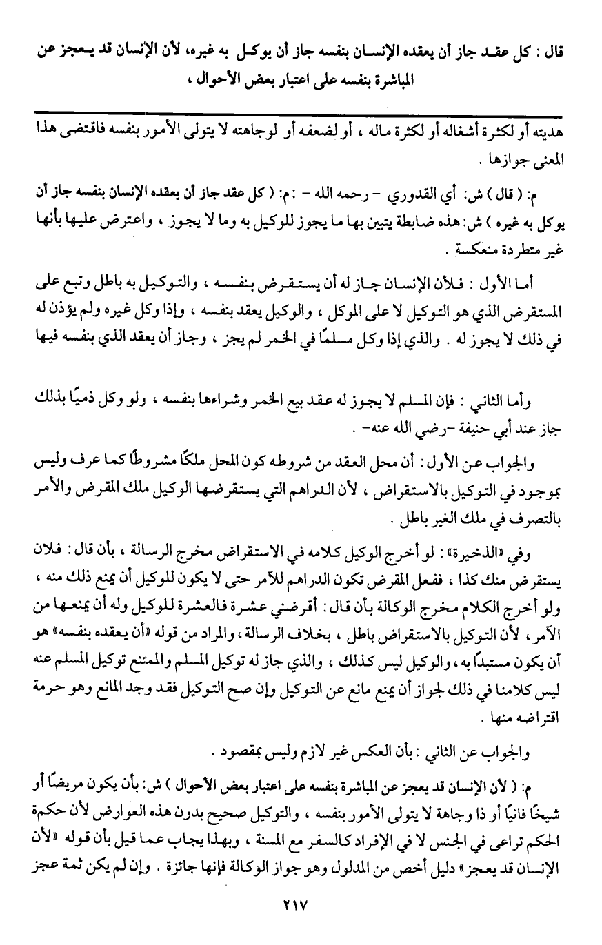 قال: كل عقد جاز أن يعقده الإنسان بنفسه جاز أن يوكل به غيره؛ لأن الإنسان قد يعجز عن المباشرة بنفسه على اعتبار بعض الأحوال،