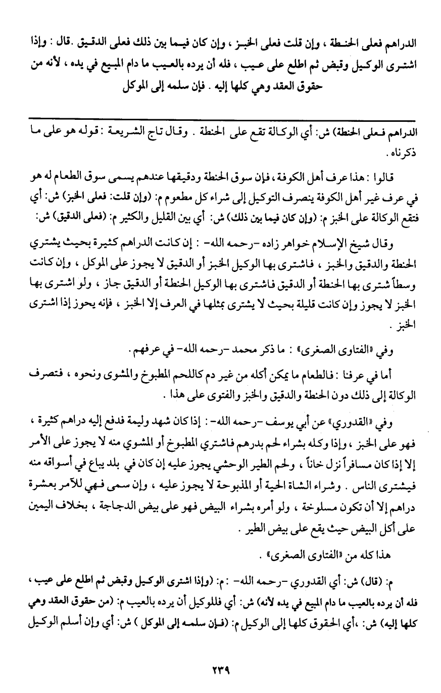 ـــــــــــــــــــــــــــــQالدراهم فعلى الحنطة) ش: أي الوكالة تقع على الحنطة. وقال تاج الشريعة: قوله هو على ما ذكرناه.