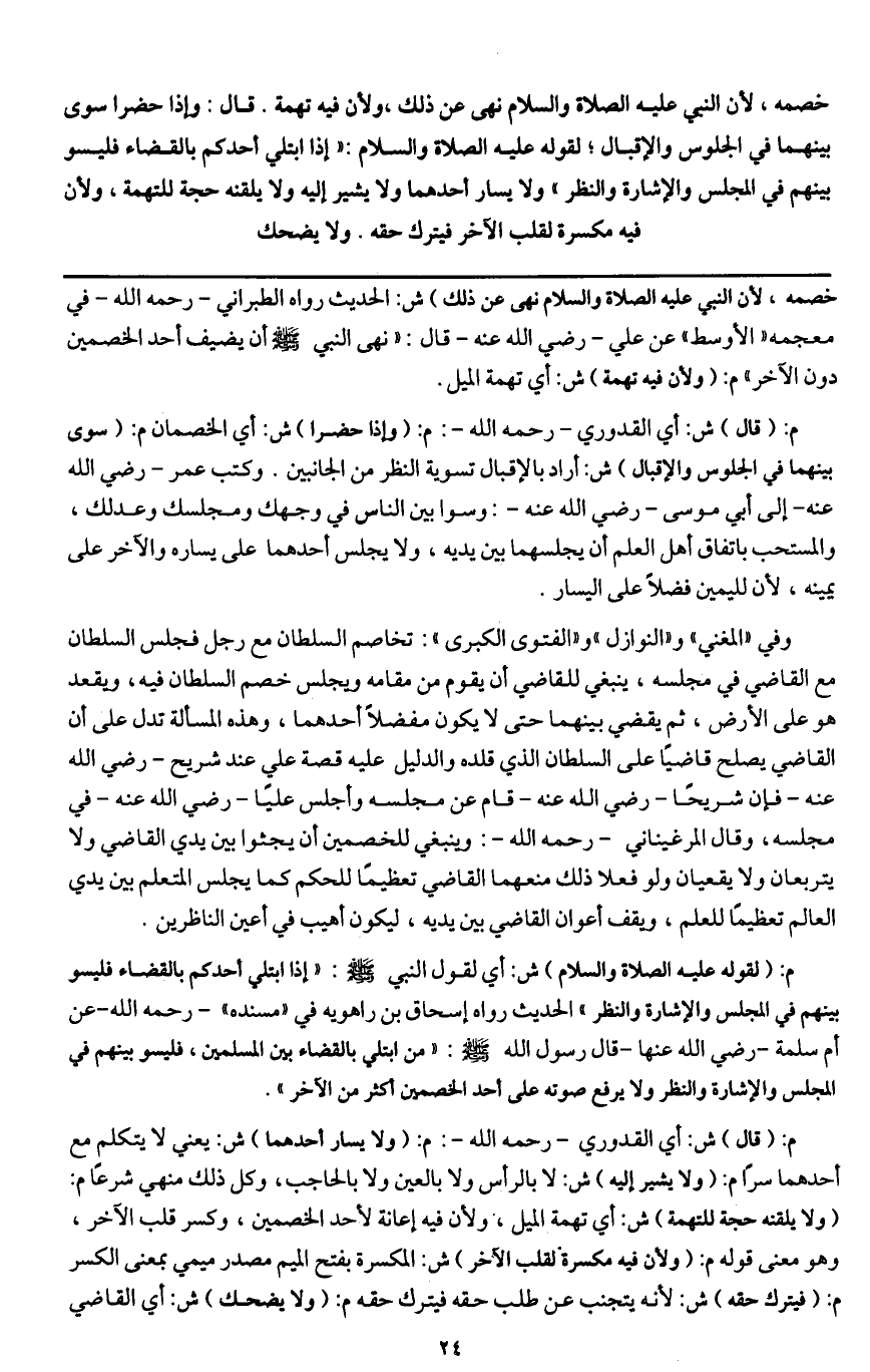 [تسوية القاضي بين الخصمين]