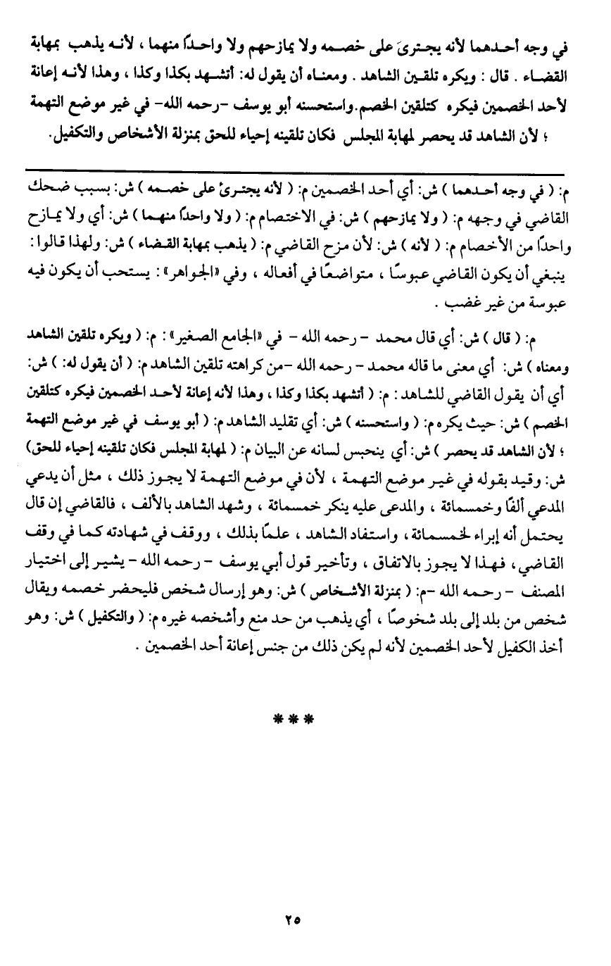 في وجه أحدهما لأنه يجترئ على خصمه ولا يمازحهم ولا واحدا منهما؛ لأنه يذهب بمهابة القضاء. قال: ويكره تلقين الشاهد. ومعناه أن يقول له: أتشهد بكذا وكذا، وهذا لأنه إعانة لأحد الخصمين فيكره كتلقين الخصم. واستحسنه أبو يوسف - رَحِمَهُ اللَّهُ - في غير موضع التهمة؛ لأن الشاهد قد يحصر لمهابة المجلس، فكان تلقينه إحياء للحق بمنزلة الأشخاص والتكفيل.