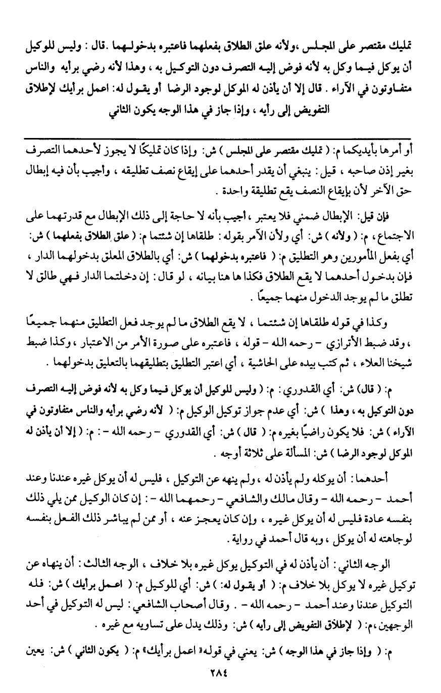 الوجه الثاني: أن يأذن له في التوكيل يوكل غيره بلا خلاف، الوجه الثالث: أن ينهاه عن توكيل غيره لا يوكل بلا خلاف م: (أو يقول له) ش: أي للوكيل م: (اعمل برأيك) ش: فله التوكيل عندنا وعند أحمد - رَحِمَهُ اللَّهُ -. وقال أصحاب الشافعي: ليس له التوكيل في أحد الوجهين م: (لإطلاق التفويض إلى رأيه) ش: وذلك يدل على تساويه مع غيره.