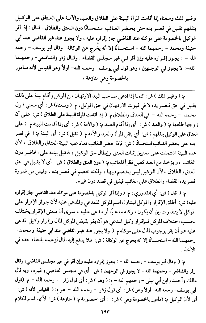 وغير ذلك ومعناه إذا أقامت المرأة البينة على الطلاق والعبد والأمة على العتاق على الوكيل بنقلهم تقبل في قصر يده حتى يحضر الغائب استحسانا دون العتق والطلاق.
