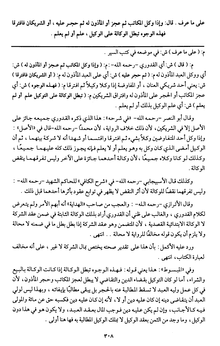 وقال الأترازي - رَحِمَهُ اللَّهُ -: والعجب من صاحب " الهداية " أنه أبهم الأمر ولم يتعرض لكلام القدوري، والغالب على ظني أن القدوري أراد بذلك الوكالة الثابتة في ضمن عقد الشركة لا الوكالة الابتدائية القصدية، لأن المتضمن وهو عقد الشركة إذا بطل بطل ما في ضمنه لا محالة ولا يلزم أن يكون قوله مخالفا للرواية لا محالة.. انتهى.