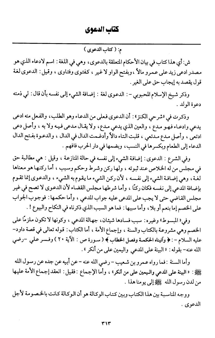 وذكر شيخ الإسلام المحبوبي -: الدعوى لغة: إضافة الشيء إلى نفسه بأن قال: لي ذمته دعوة الولد.