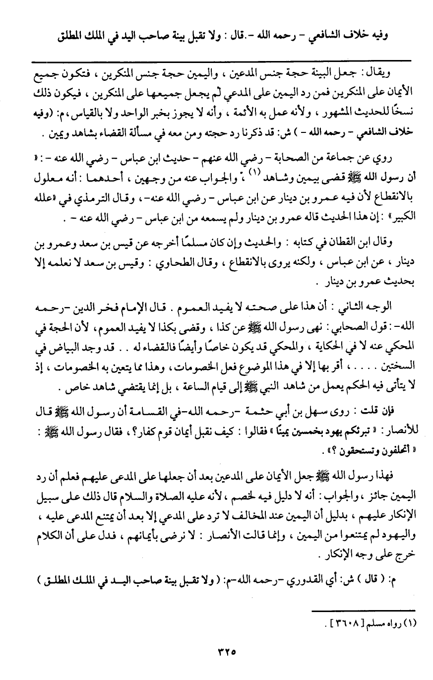 روي عن جماعة من الصحابة - رَضِيَ اللَّهُ عَنْهُمْ - حديث ابن عباس - رَضِيَ اللَّهُ عَنْهُ -: «أن رسول الله - صَلَّى اللَّهُ عَلَيْهِ وَسَلَّمَ - قضى بيمين وشاهد» والجواب عنه من وجهين، أحدهما: أنه معلول بالانقطاع لأن فيه عمرو بن دينار عن ابن عباس - رَضِيَ اللَّهُ عَنْهُ -، وقال الترمذي في "علله الكبير": إن هذا الحديث قاله عمرو بن دينار ولم يسمعه من ابن عباس - رَضِيَ اللَّهُ عَنْهُ -.