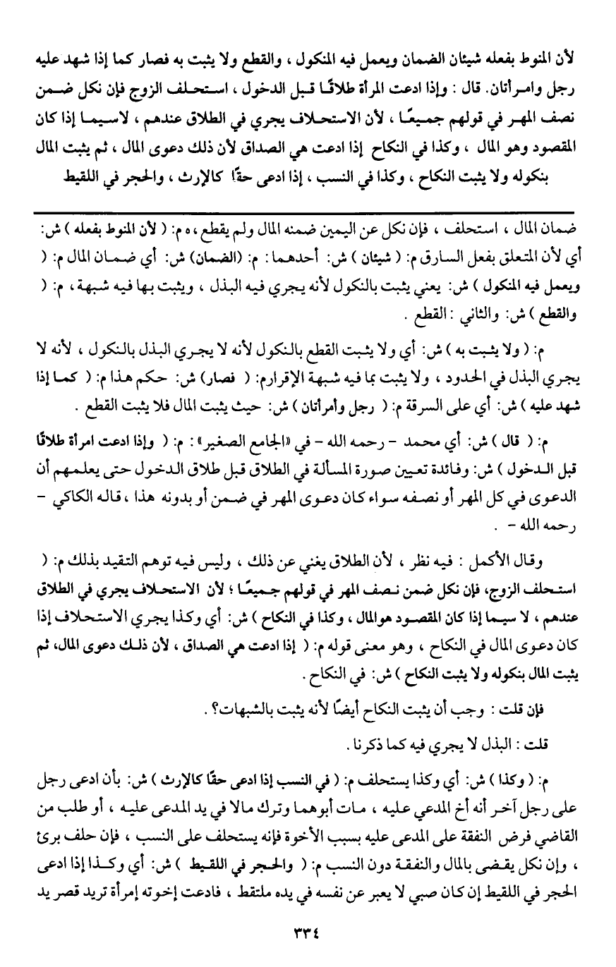 وقال الأكمل: فيه نظر، لأن الطلاق يغني عن ذلك، وليس فيه توهم التقيد بذلك م: (استحلف الزوج، فإن نكل ضمن نصف المهر في قولهم جميعًا؛ لأن الاستحلاف يجري في الطلاق عندهم، لا سيما إذا كان المقصود هو المال، وكذا في النكاح) ش: أي وكذا يجري الاستحلاف إذا كان دعوى المال في النكاح، وهو معنى قوله م: (إذا ادعت هي الصداق، لأن ذلك دعوى المال، ثم يثبت المال بنكوله ولا يثبت النكاح) ش: في النكاح.