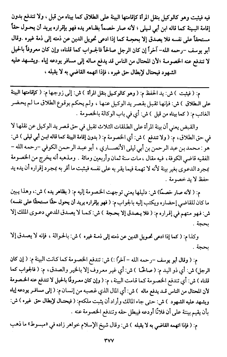 والقبض يعني أن بينة المرأة على الطلقات الثلاث تقبل في حق قصر يد الوكيل عن نقلها لا في حق الطلاق، م: (ولا تندفع) ش: أي الخصومة م: (بدون إقامة البينة كما قاله ابن أبي ليلى) ش: هو: محمد بن عبد الرحمن بن أبي ليلى الأنصاري، أبو عبد الرحمن الكوفي - رَحِمَهُ اللَّهُ - الفقيه قاضي الكوفة، فيه مقال، مات سنة ثمان وأربعين ومائة. ومذهبه أنه يخرج من الخصومة بمجرد الدعوى بغير بينة لأنه لا تهمة فيما يقر به على نفسه فيثبت ما أقر به بمجرد إقراره أن يده يد حفظ لا يد خصومة.