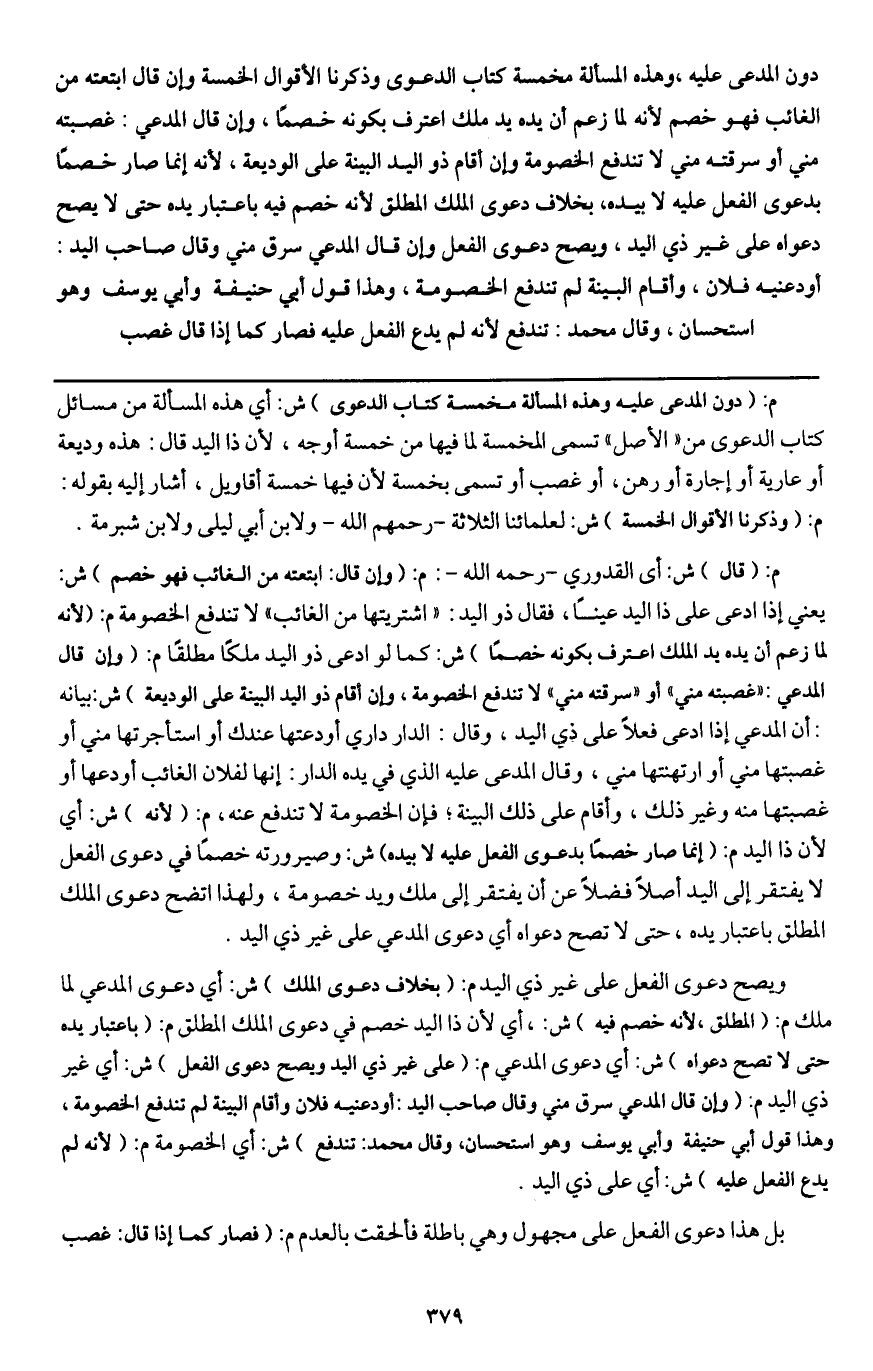 ـــــــــــــــــــــــــــــQم: (دون المدعى عليه وهذه المسألة مخمسة كتاب الدعوى) ش: أي هذه المسألة من مسائل كتاب الدعوى من "الأصل" تسمى المخمسة لما فيها من خمسة أوجه، لأن ذا اليد قال: هذه وديعة أو عارية أو إجارة أو رهن، أو غصب أو تسمى بخمسة لأن فيها خمسة أقاويل، أشار إليه بقوله: م: (وذكرنا الأقوال الخمسة) ش: لعلمائنا الثلاثة - رَحِمَهُمُ اللَّهُ - ولابن أبي ليلى ولابن شبرمة.