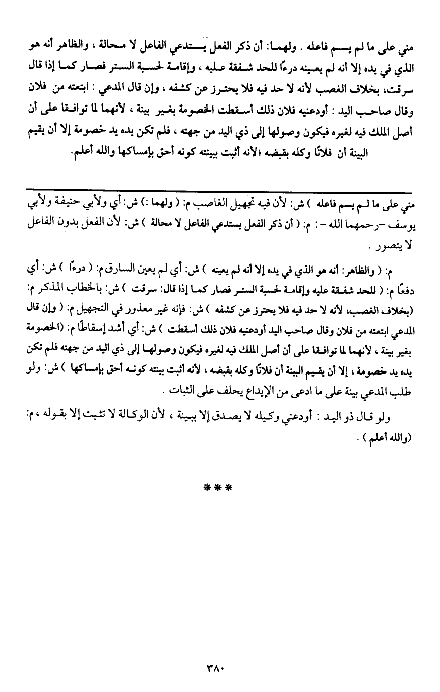 مني على ما لم يسم فاعله. ولهما: أن ذكر الفعل يستدعي الفاعل لا محالة، والظاهر أنه هو الذي في يده إلا أنه لم يعينه درءًا للحد شفقة عليه، وإقامة لحسبة الستر فصار كما إذا قال سرقت، بخلاف الغصب لأنه لا حد فيه فلا يحترز عن كشفه، وإن قال المدعي: ابتعته من فلان وقال صاحب اليد: أودعنيه فلان ذلك أسقطت الخصومة بغير بينة، لأنهما لما توافقا على أن أصل الملك فيه لغيره فيكون وصولها إلى ذي اليد من جهته، فلم تكن يده يد خصومة إلا أن يقيم البينة أن فلانًا وكله بقبضه؛ لأنه أثبت بينته كونه أحق بإمساكها والله أعلم.