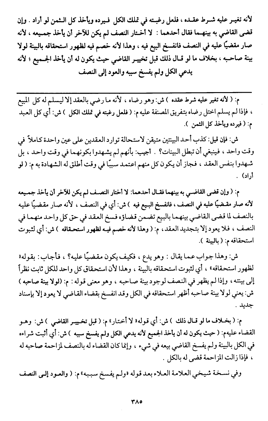 وفي نسخة شيخي العلامة العلاء بعد قوله " ولم يفسخ سببه " م: (والعود إلى النصف
