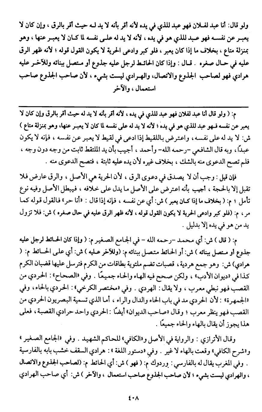 م: (قال) ش: أي محمد - رَحِمَهُ اللَّهُ - في الجامع الصغير م: (وإذا كان الحائط لرجل عليه جذوع أو متصل ببنائه) ش: أو الحائط متصل ببنائه م: (وللآخر عليه) ش: أي على الحائط م: (هرادي) ش: وهو جمع هردية، قصبات تضم ملتوية بطاقات من الكرم فترسل عليها قضبان الكرم كذا في " ديوان الأدب "، ولكن صحح فيه الهاء والحاء جميعاً. وفي " الصحاح ": الحردي من القصب فهو نبطي معرب، ولا يقال: الهردي. وفي " مختصر الكرخي ": الحردي بالحاء، وفي " الجمهرة ": لأن الحردي مد في باب الحاء والدال والراء، أما الذي تسميه البصريون الحردي من القصب فهو ينظر معرب، وقال " صاحب الديوان " أيضاً: الحردي واحد حرادي القصبة، فعلى هذا يجوز أن يقال بالهاء والحاء جميعاً.