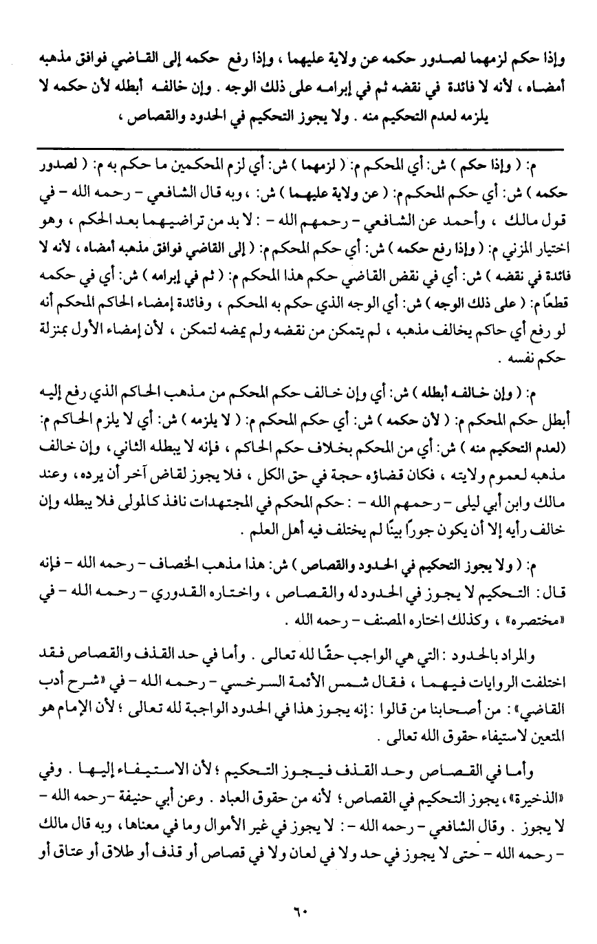 ولا يجوز التحكيم في الحدود والقصاص،