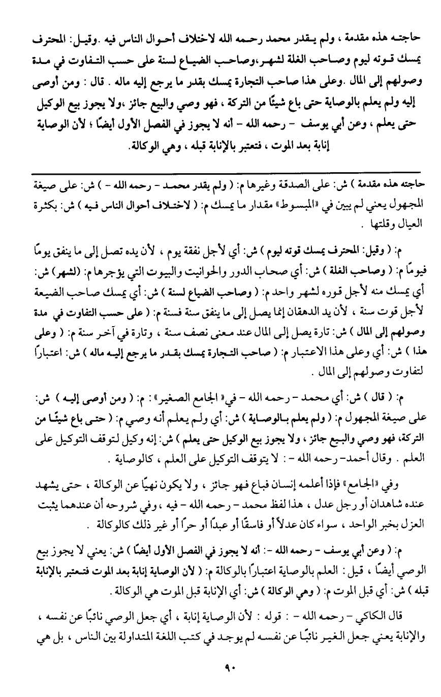 حاجته هذه مقدمة، ولم يقدر محمد - رَحِمَهُ اللَّهُ - لاختلاف أحوال الناس فيه. وقيل: المحترف يمسك قوته ليوم وصاحب الغلة لشهر، وصاحب الضياع لسنة على حسب التفاوت في مدة وصولهم إلى المال. وعلى هذا صاحب التجارة يمسك بقدر ما يرجع إليه ماله.