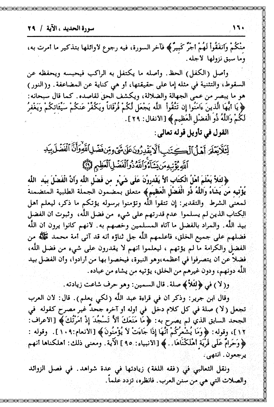 لِئَلاَّ يَعْلَمَ أَهْلُ الْكِتابِ أَلاَّ يَقْدِرُونَ عَلى شَيْءٍ مِنْ فَضْلِ اللَّهِ وَأَنَّ الْفَضْلَ بِيَدِ اللَّهِ يُؤْتِيهِ مَنْ يَشاءُ وَاللَّهُ ذُو الْفَضْلِ الْعَظِيمِ (29)