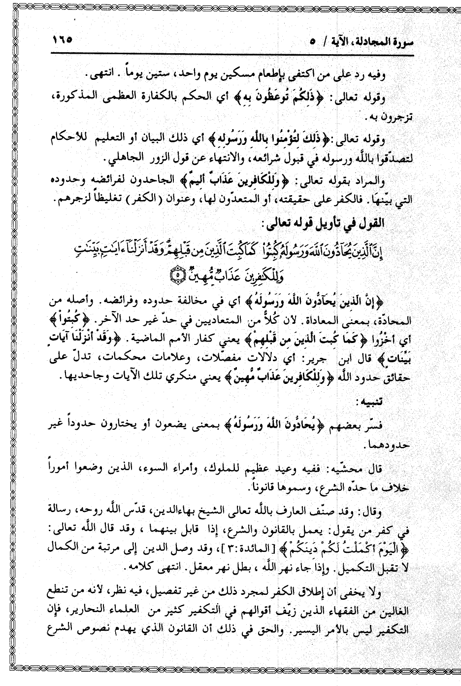 القول في تأويل قوله تعالى: [سورة المجادلة (58) : آية 5]