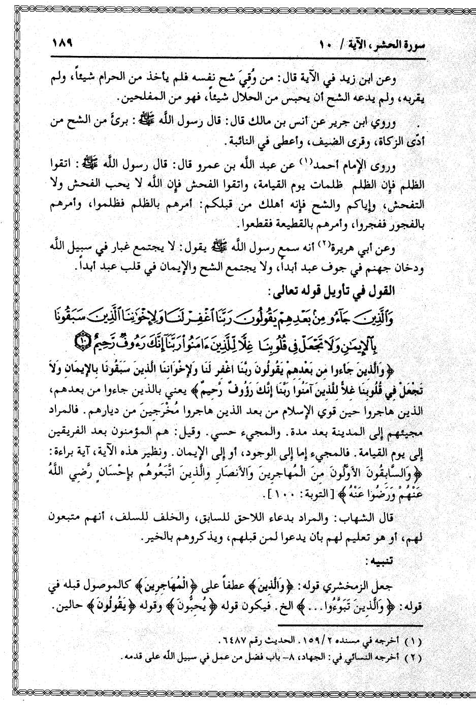 وَالَّذِينَ جاؤُ مِنْ بَعْدِهِمْ يَقُولُونَ رَبَّنَا اغْفِرْ لَنا وَلِإِخْوانِنَا الَّذِينَ سَبَقُونا بِالْإِيمانِ وَلا تَجْعَلْ فِي قُلُوبِنا غِلاًّ لِلَّذِينَ آمَنُوا رَبَّنا إِنَّكَ رَؤُفٌ رَحِيمٌ (10)