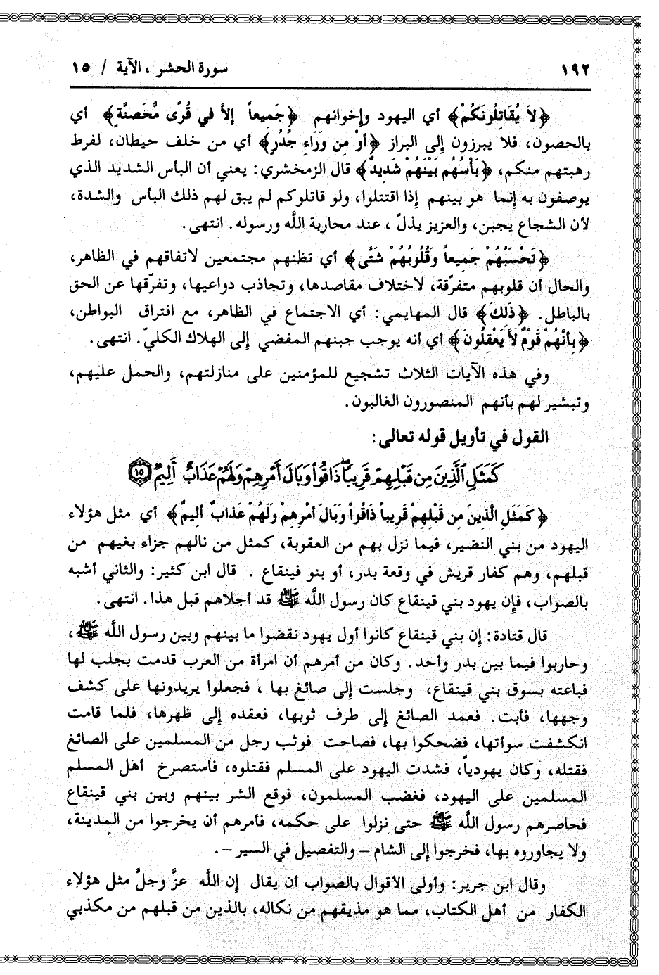 القول في تأويل قوله تعالى: [سورة الحشر (59) : آية 15]