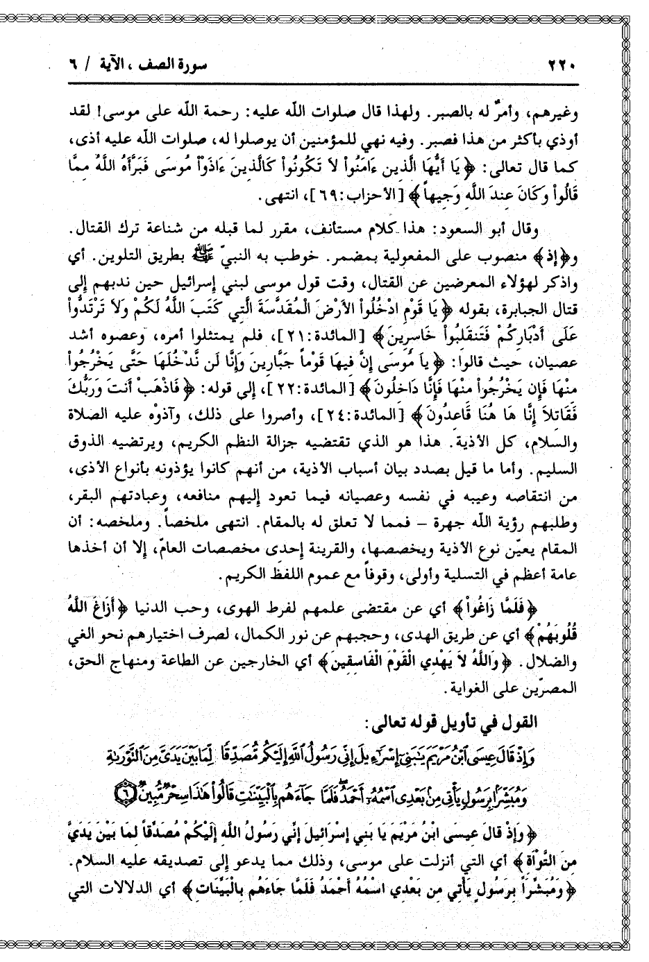 وَإِذْ قالَ عِيسَى ابْنُ مَرْيَمَ يا بَنِي إِسْرائِيلَ إِنِّي رَسُولُ اللَّهِ إِلَيْكُمْ مُصَدِّقاً لِما بَيْنَ يَدَيَّ مِنَ التَّوْراةِ وَمُبَشِّراً بِرَسُولٍ يَأْتِي مِنْ بَعْدِي اسْمُهُ أَحْمَدُ فَلَمَّا جاءَهُمْ بِالْبَيِّناتِ قالُوا هذا سِحْرٌ مُبِينٌ (6)