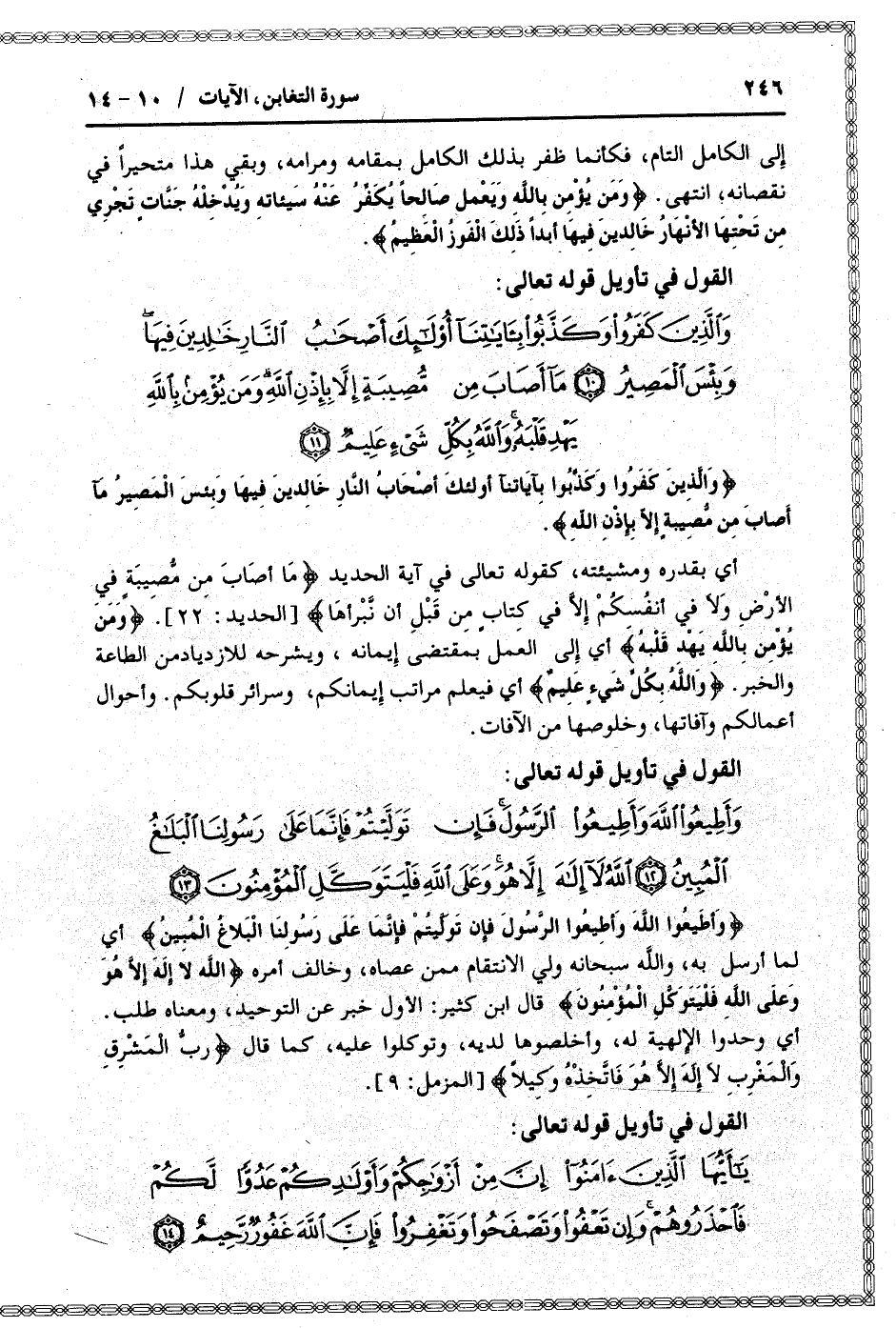 وَأَطِيعُوا اللَّهَ وَأَطِيعُوا الرَّسُولَ فَإِنْ تَوَلَّيْتُمْ فَإِنَّما عَلى رَسُولِنَا الْبَلاغُ الْمُبِينُ (12) اللَّهُ لا إِلهَ إِلاَّ هُوَ وَعَلَى اللَّهِ فَلْيَتَوَكَّلِ الْمُؤْمِنُونَ (13)