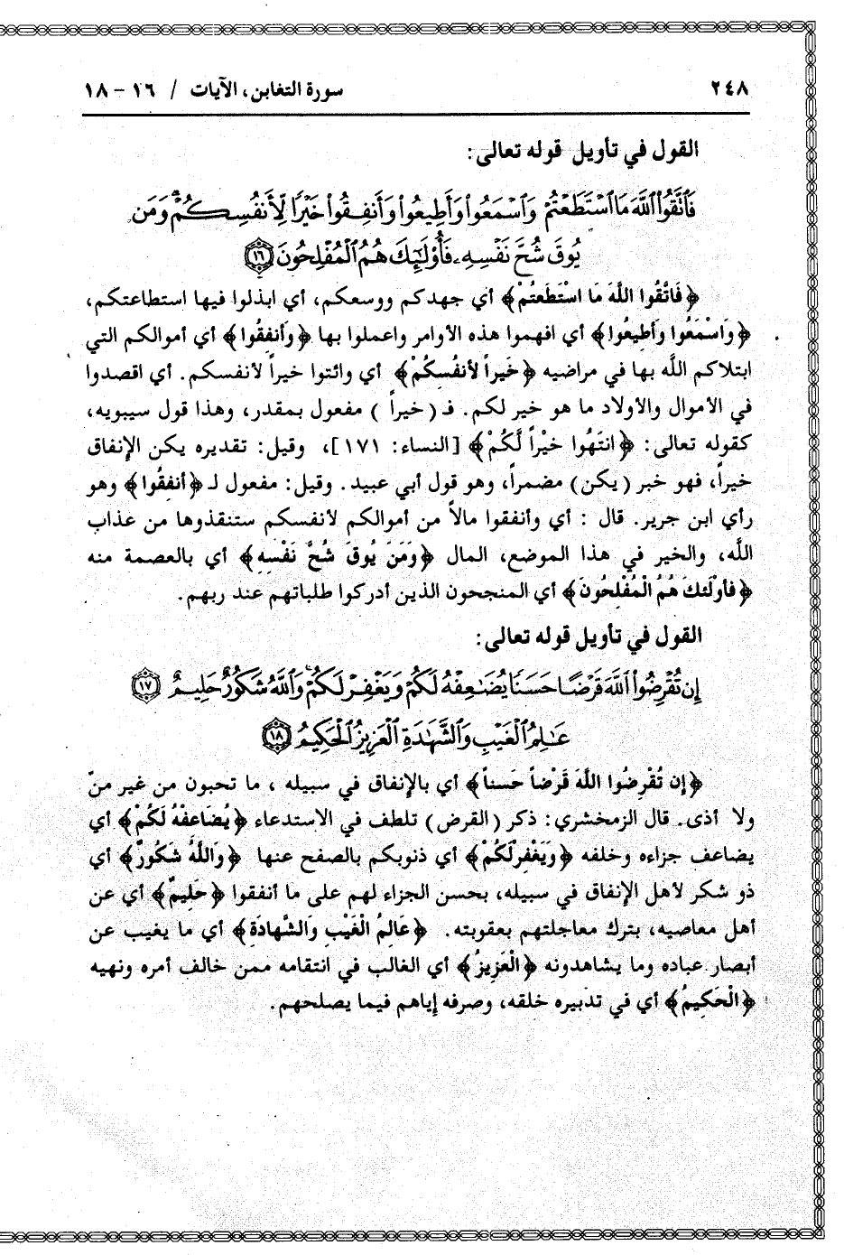 القول في تأويل قوله تعالى: [سورة التغابن (64) : آية 16]