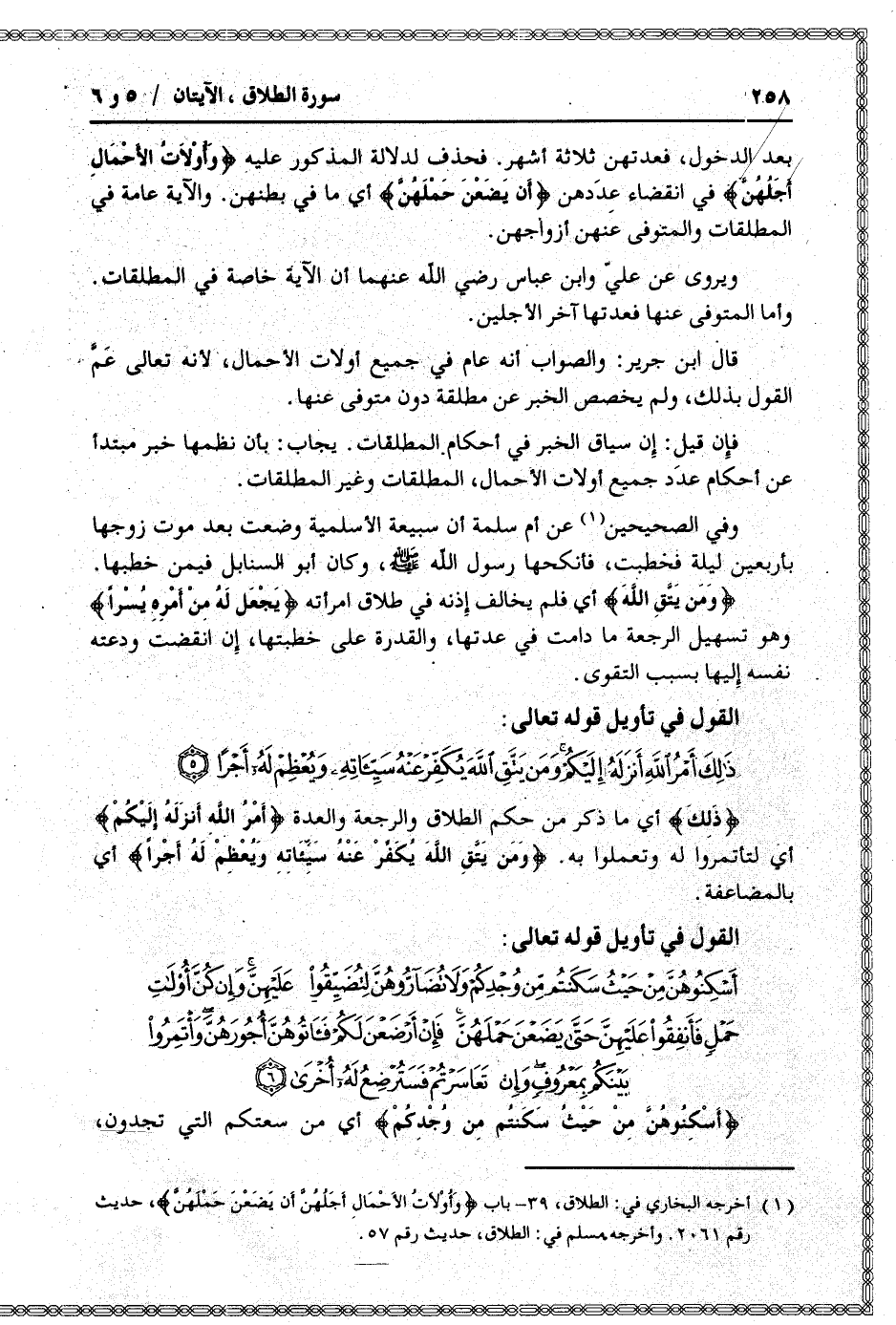 (1) أخرجه البخاري في: الطلاق، 39- باب وَأُولاتُ الْأَحْمالِ أَجَلُهُنَّ أَنْ يَضَعْنَ حَمْلَهُنَّ، حديث رقم 2061. وأخرجه مسلم في: الطلاق، حديث رقم 57.