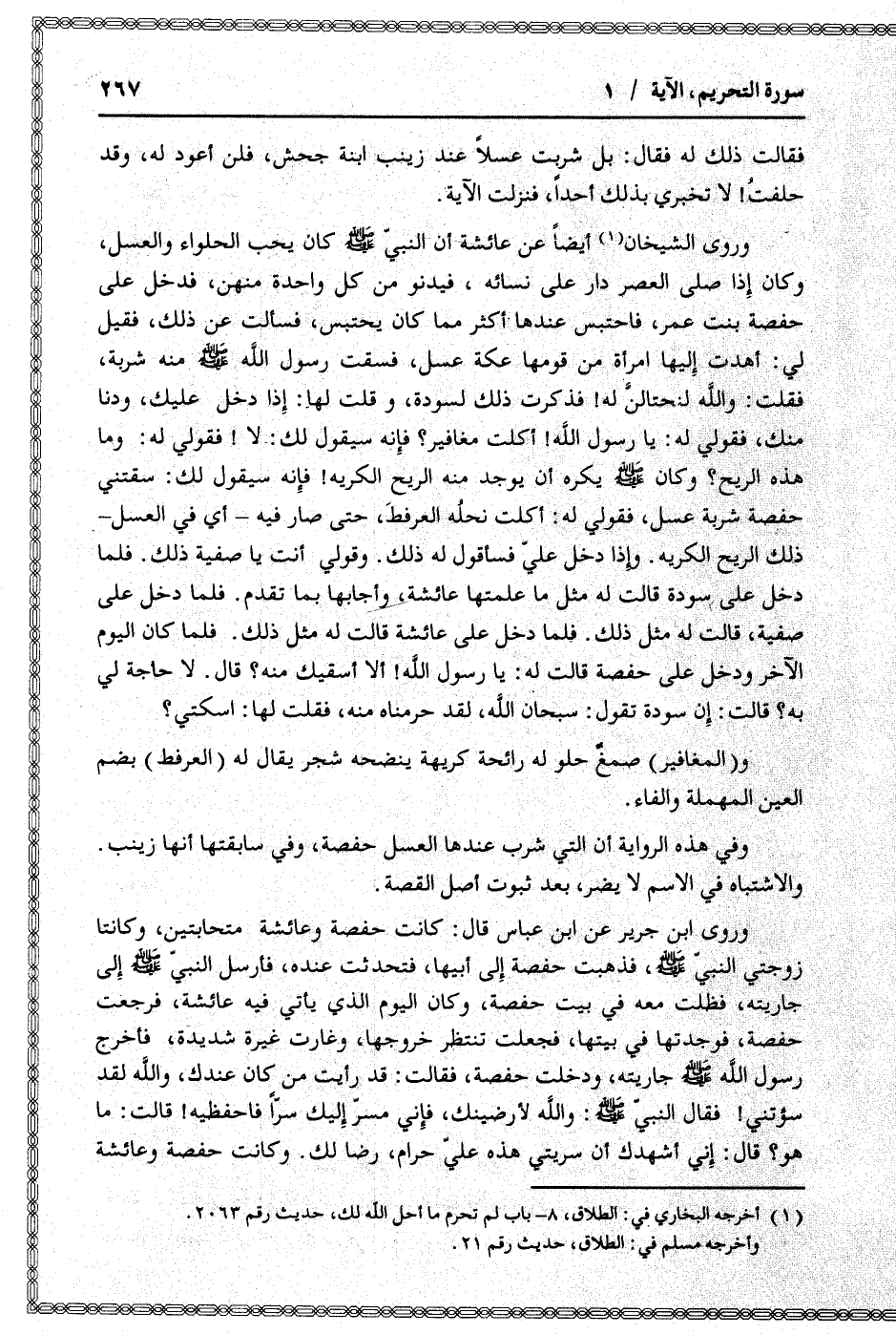 (1) أخرجه البخاري في: الطلاق، 8- باب لم تحرم ما أحل الله لك، حديث رقم 2063.