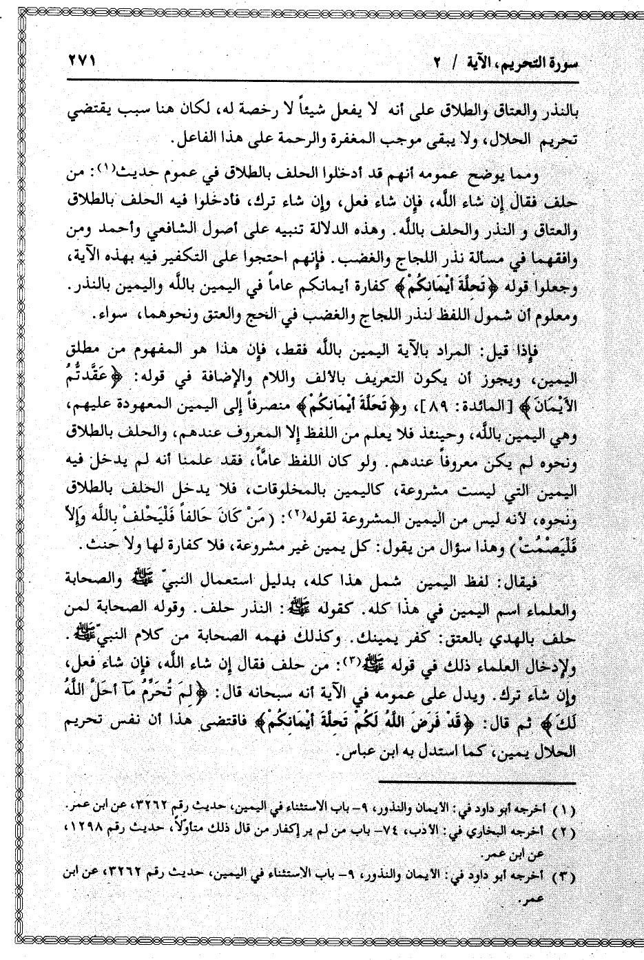 (3) أخرجه أبو داود في: الأيمان والنذور، 9- باب الاستثناء في اليمين، حديث رقم 3262، عن ابن عمر.