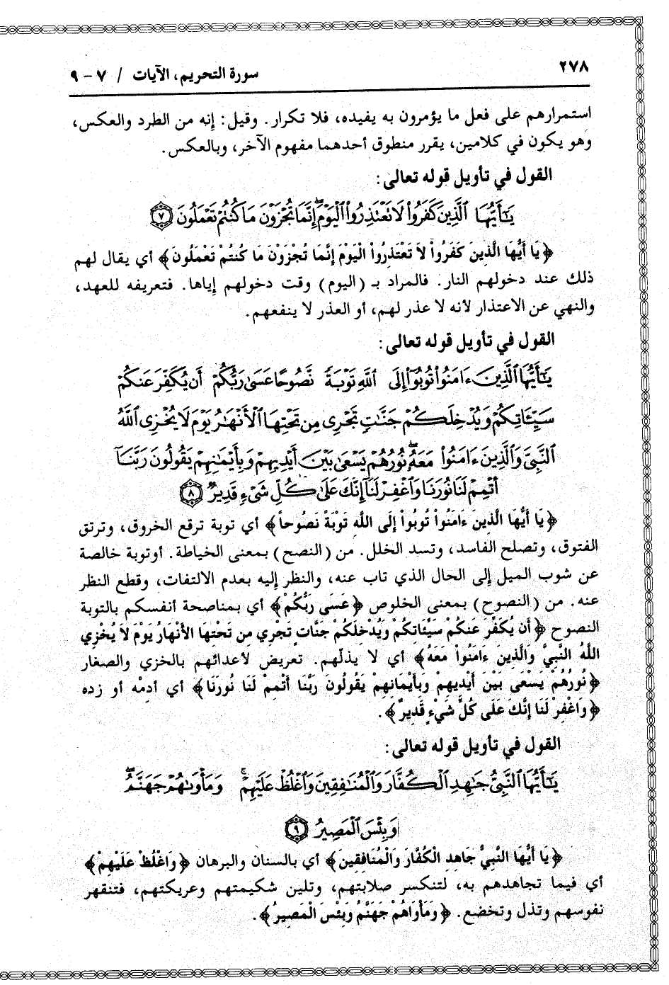 القول في تأويل قوله تعالى: [سورة التحريم (66) : آية 9]