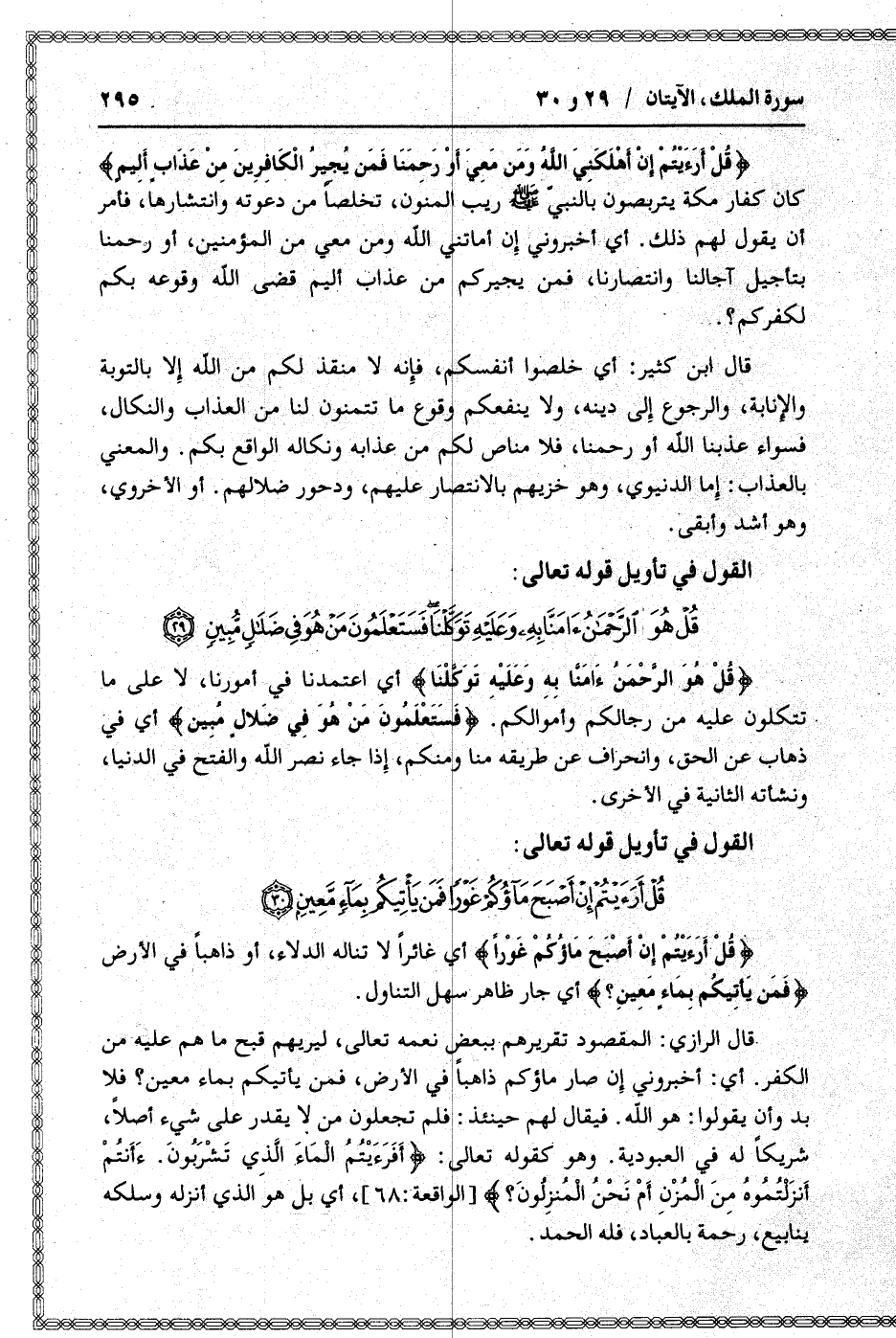 قُلْ هُوَ الرَّحْمنُ آمَنَّا بِهِ وَعَلَيْهِ تَوَكَّلْنا فَسَتَعْلَمُونَ مَنْ هُوَ فِي ضَلالٍ مُبِينٍ (29)