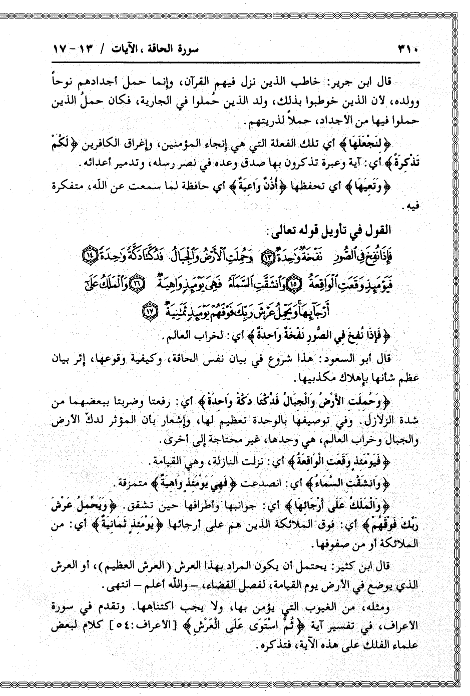 القول في تأويل قوله تعالى: [سورة الحاقة (69) : الآيات 13 الى 17]